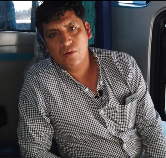Sr. William Guamán propietario de la unidad No. 10 de la Cooperativa TACA ANDINA, muestra su satisfacción al recibir su unidad, expresó su agradecimiento por el trabajo realizado.